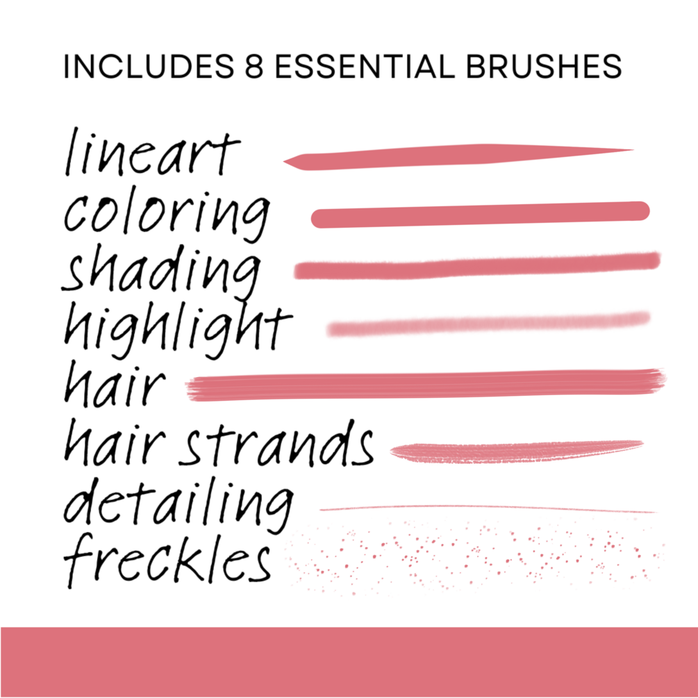 使用肖像必备画笔套装,提升您的数字肖像作品。此多功能画笔包包含8款必备画笔,适用于干净的线稿、顺滑上色、真实阴影、亮点高光及精细细节。专为肖像艺术家和插画师设计,兼容Procreate。